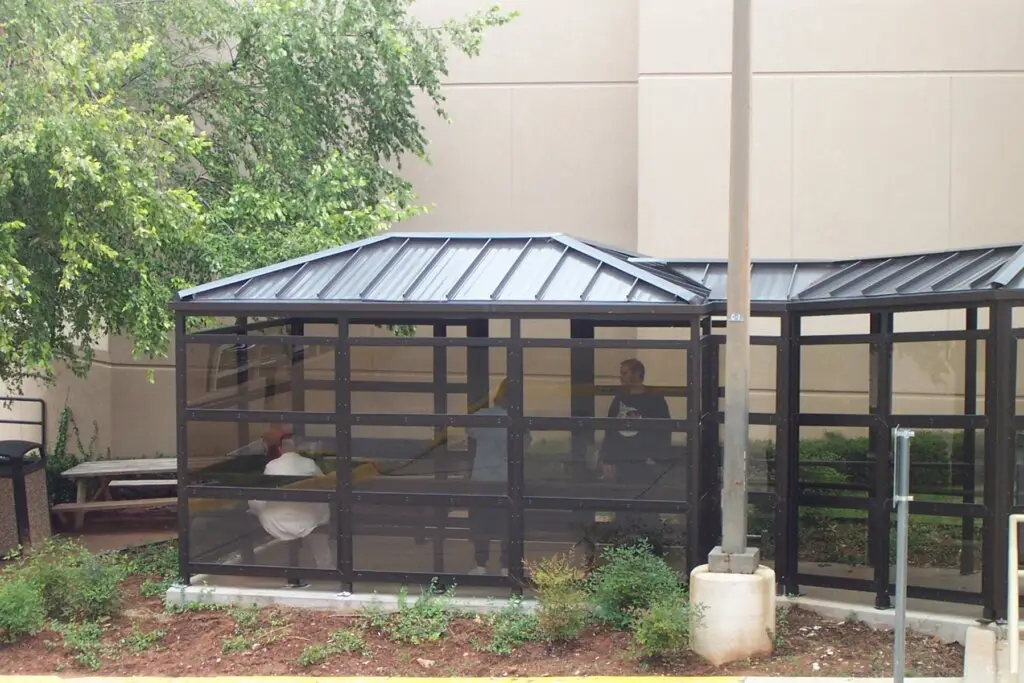 تتميز جميع نماذج كابينات التدخين الخاصة بنا بتقنية الإطفاء الآمنة من الحرائق في نظام صحن السجائر. هذا يعني جمع أعقاب السجائر بأمان.