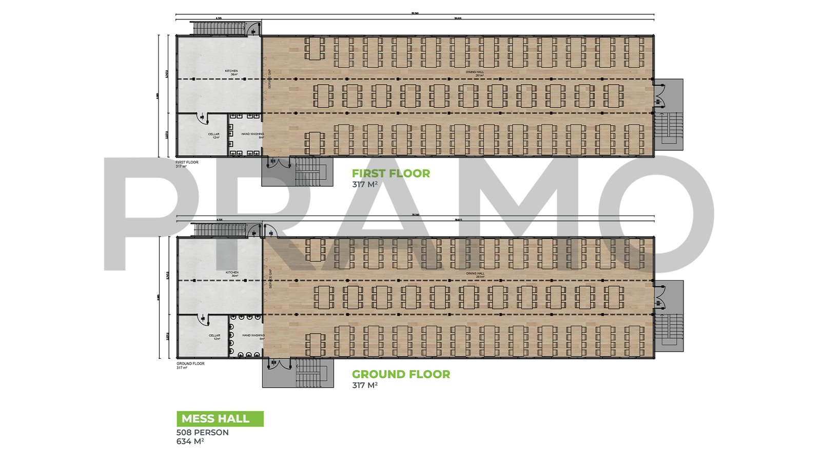 قاعة طعام مسبقة الصنع بمساحة 634 متر مربع
