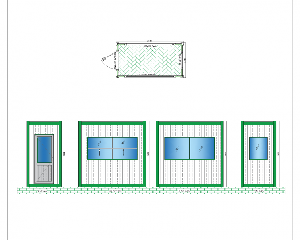 Bu panel kabin, geniş iç hacmi ve bol ışık alan cam yüzeyleri ile ferah ve işlevsel bir kullanım sunar. 2400 mm x 3000 mm ölçülerinde ve 2540 mm yüksekliğinde olan bu yapı, özellikle şantiye, güvenlik noktaları veya geçici ofis olarak kullanıma uygun tasarlanmıştır. Kabin, modern ve pratik bir görünüm sunarken dayanıklı malzemeleriyle de uzun ömürlü bir çözüm sağlar.