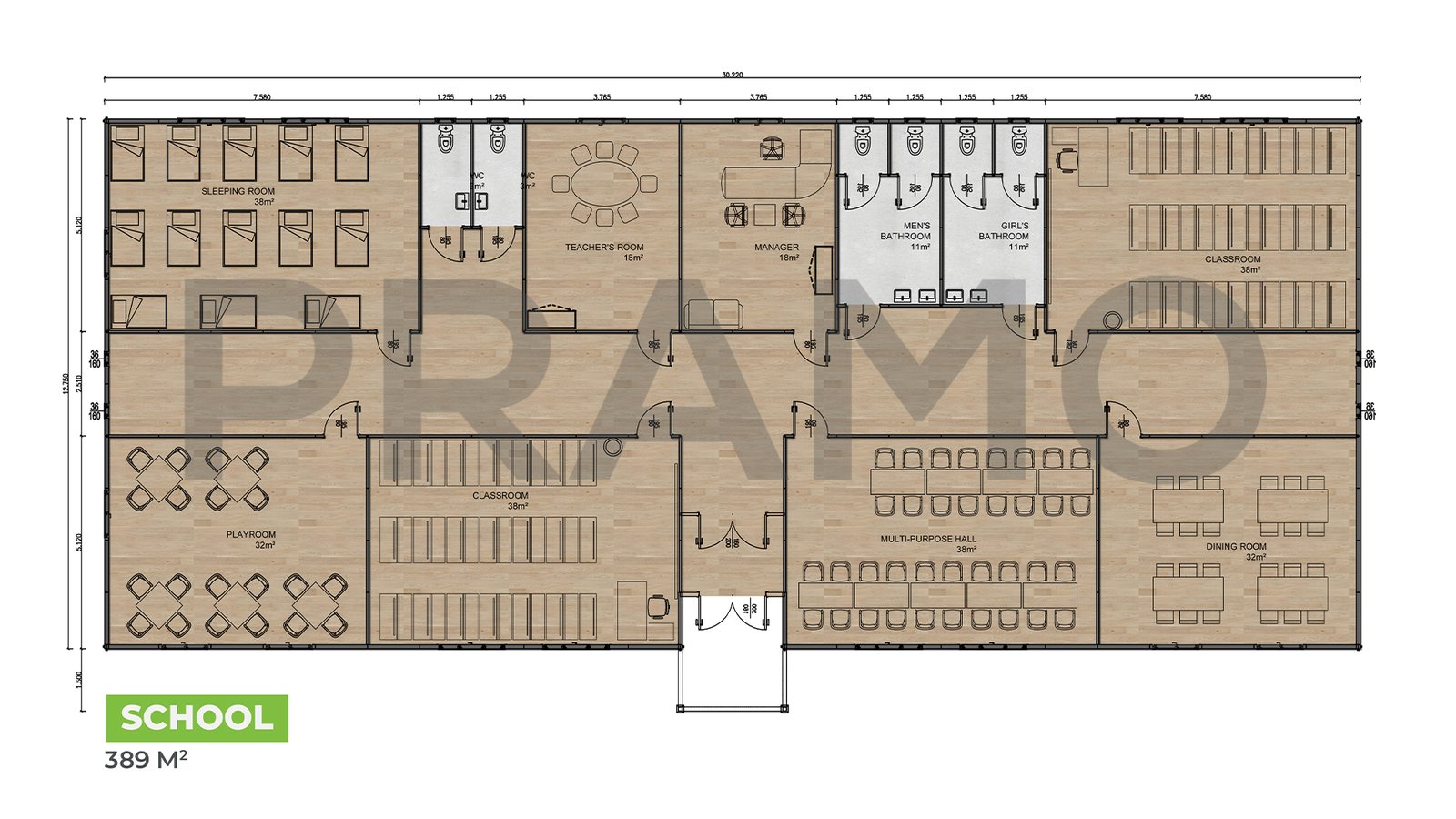 مباني مدرسية جاهزة بمساحة 389 متر مربع