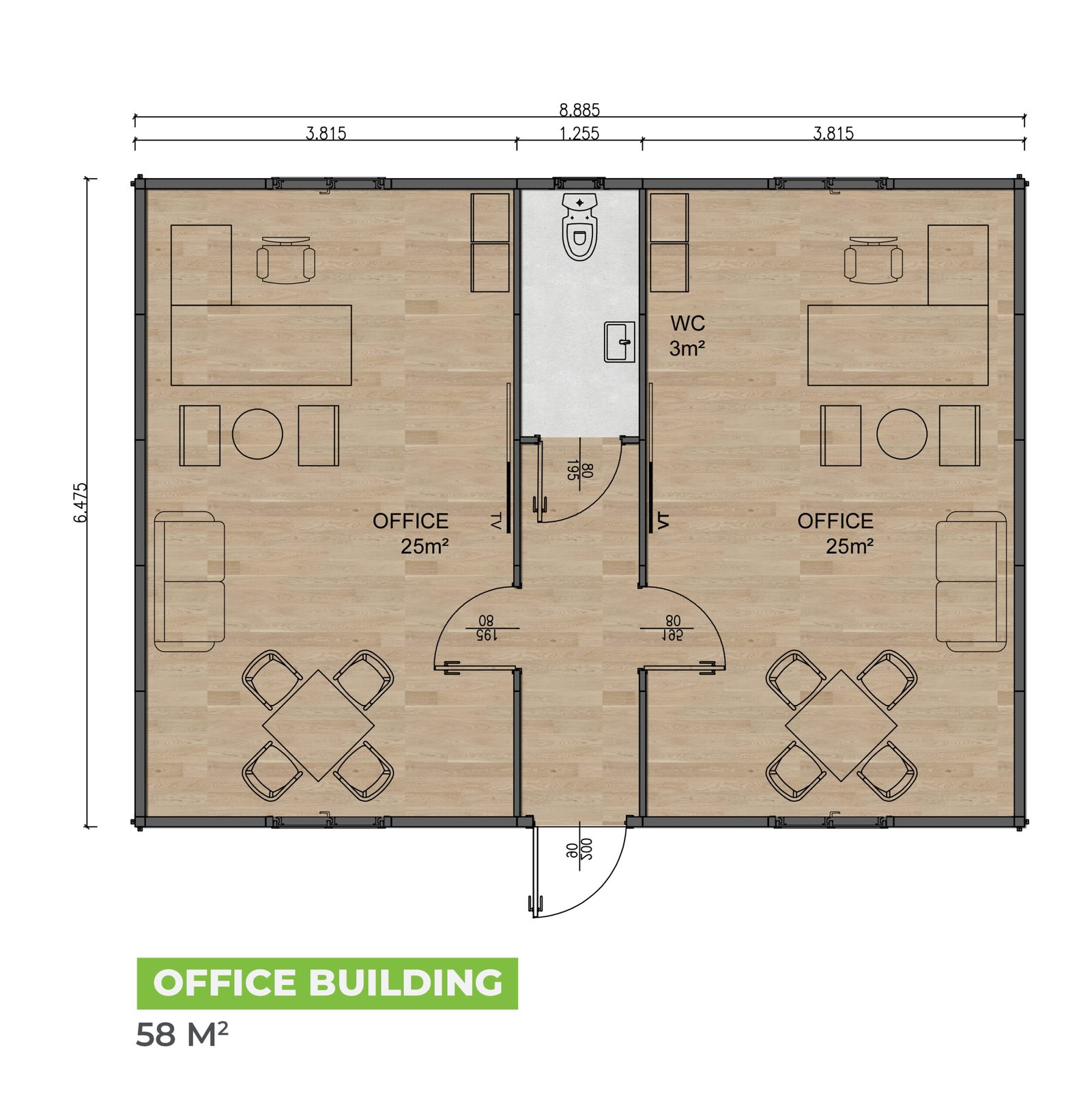 3. 154 متر مربع من المساكن الفولاذية المكونة من طابقين