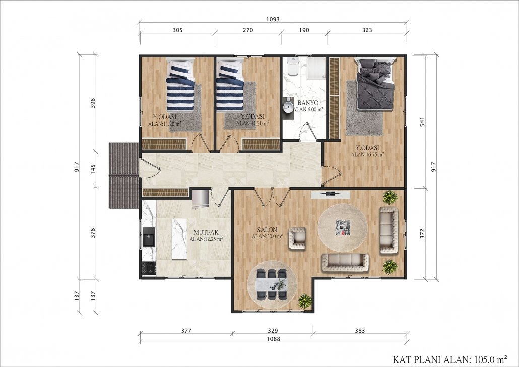 105 متر مربع من المساكن الجاهزة المكونة من طابق واحد