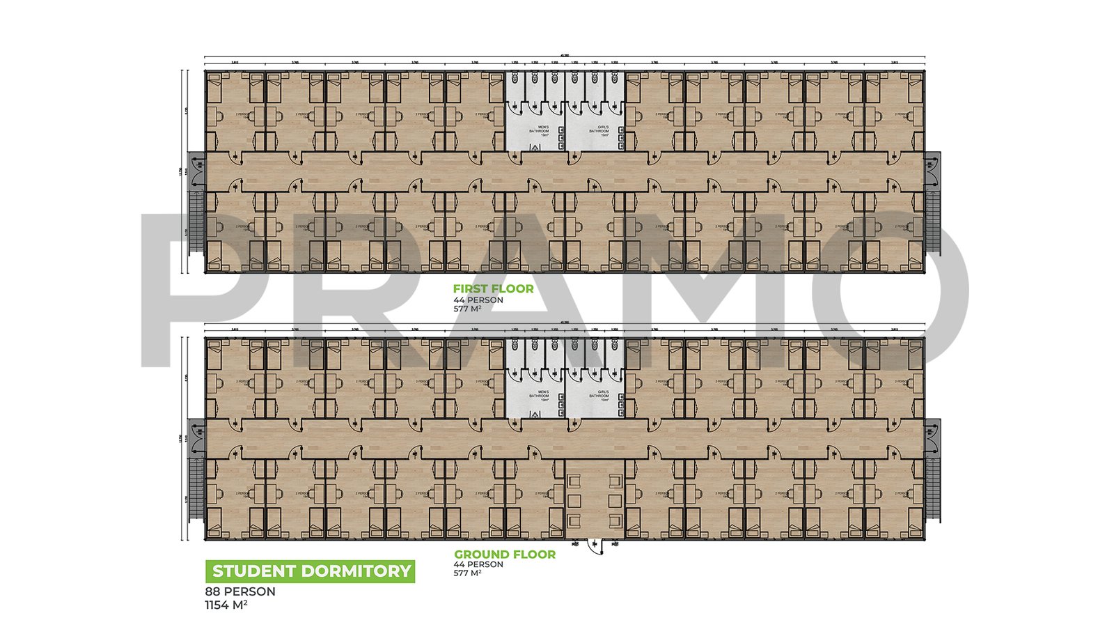 1154 متر مربع – سكن ضباط مسبق الصنع من طابقين