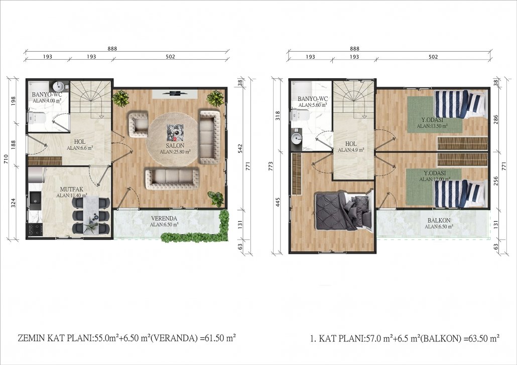 125 متر مربع من المساكن الجاهزة المكونة من طابقين
