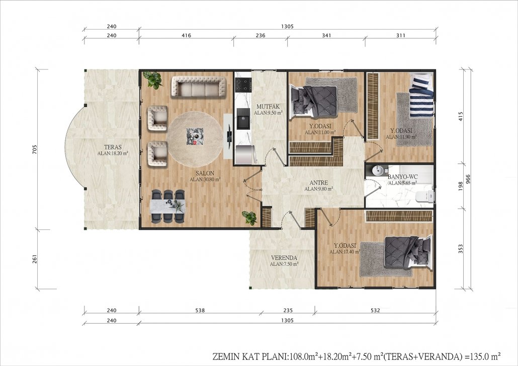 130 متر مربع من المساكن الجاهزة المكونة من طابق واحد
