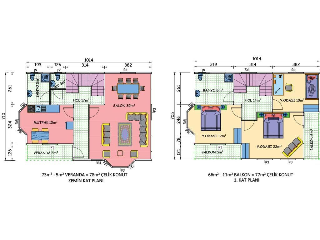 155 متر مربع من المساكن الفولاذية المكونة من طابقين
