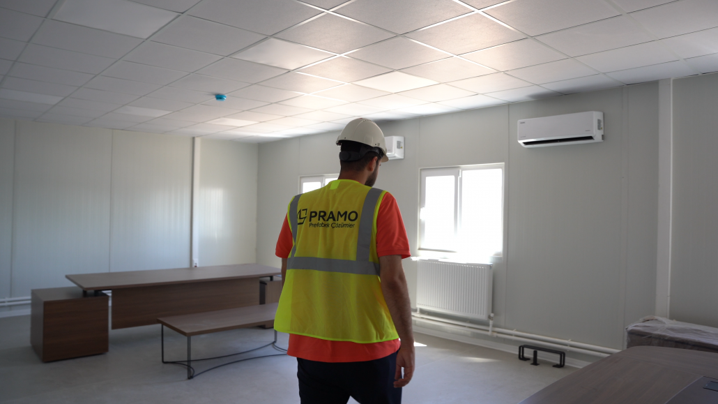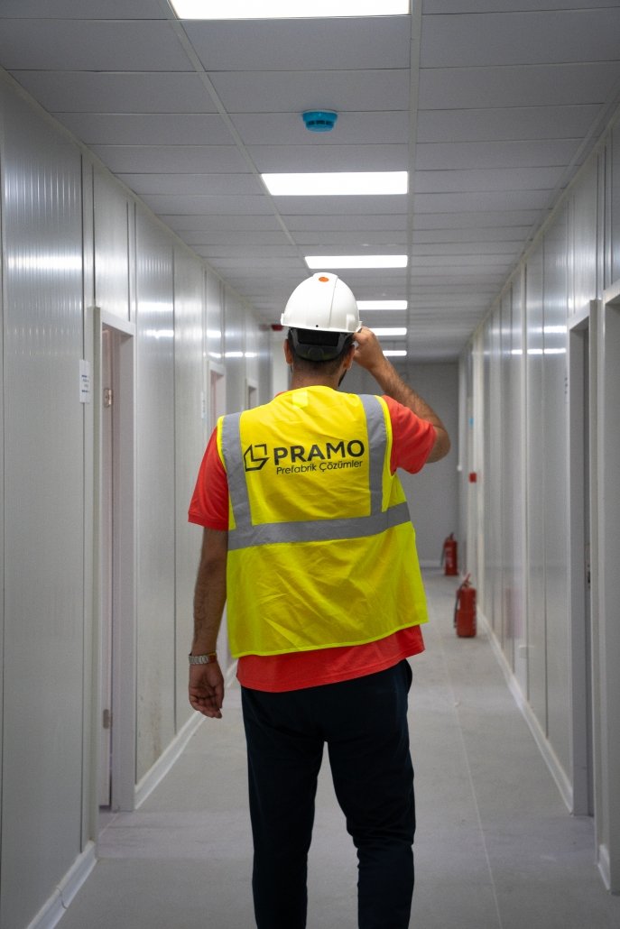 تم بناء المبنى المكتبي باستخدام هيكل فولاذي خفيف مقاوم للزلازل ويوفر بيئة عمل آمنة بفضل متانته. بفضل تصميمها الحديث وترتيباتها الداخلية الوظيفية، تم زيادة راحة وكفاءة الموظفين العاملين في موقع البناء. يعد هذا المشروع عملاً ناجحًا يوضح قدرة شركة Pramo Prefabrik على توفير حلول بناء سريعة وموثوقة وعالية الجودة وإعطاء الأولوية لرضا العملاء.